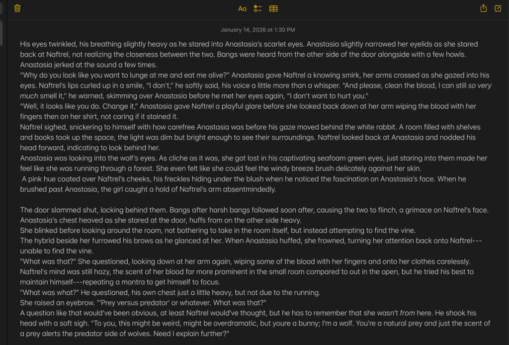 How do I rewrite it? I usually use notes in general for literally everything, including this work, so, I went to my writing folder and made a new note.